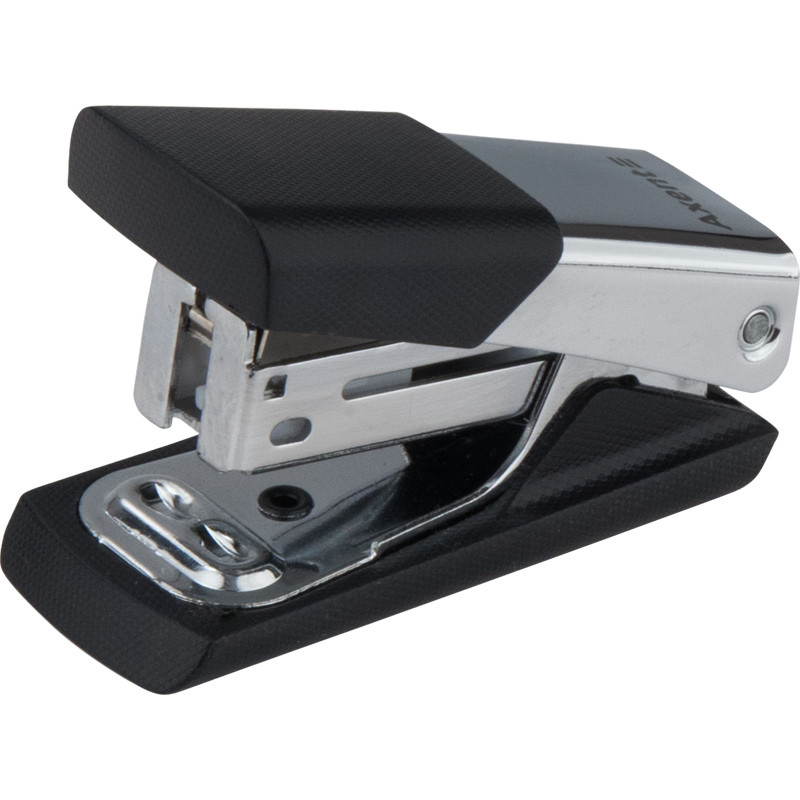 Степлер Axent Technic принадлежит к металлической серии, прочный металлический корпус устойчив даже к интенсивным нагрузкам. Предназначен для настольного или ручного скрепления листов бумаги. Пластиковая вставка сверху на рукоятке препятствует скольжению руки в процессе работы. Удобен в использовании - надежный механизм подачи скоб из прочного металла обеспечивает легкую подачу скоб в рабочую зону, скрепление без осечек и простую замену скоб. Имеет окошко для контроля наличия скоб.Способ скрепления закрытый. Прорезиненная подошва предотвращает скольжение и бережет поверхность стола от царапин. Стильний хромований металевий корпус.