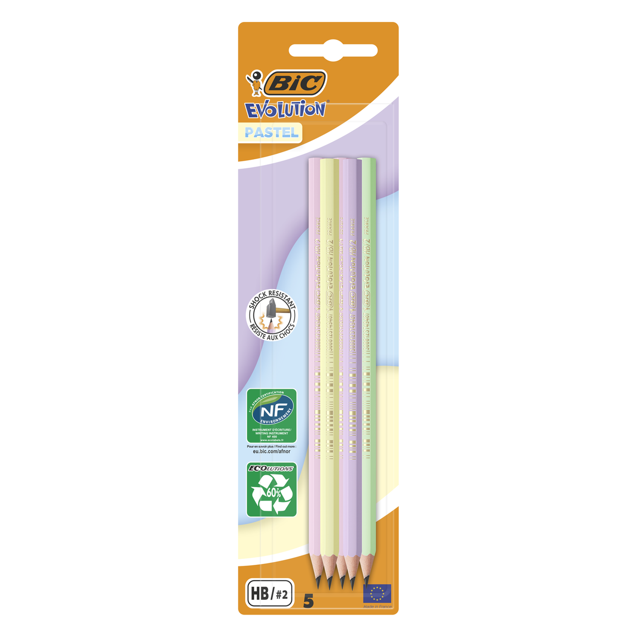 Пастельні графітові олівці BIC Evolution — корпуси чотирьох різних кольорів з гумкою ударостійкий грифель твердість HB паковання по 12 шт.